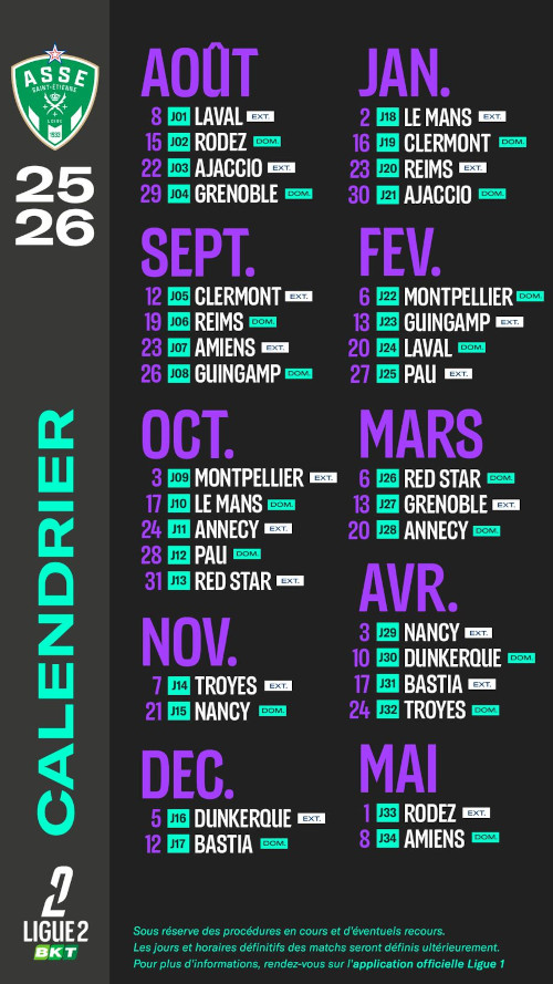 Attention : les journées mentionnées pour les matchs ne sont pas définitives.