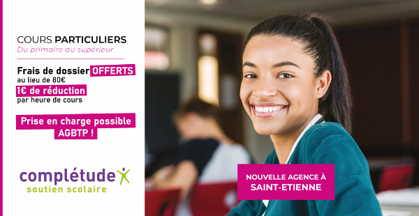 Avec "Complétude", vous achetez des cours en fonction des besoins de votre enfant. Le soutien scolaire s'arrête à partir du moment où votre enfant atteint ses objectifs. Un intervenant spécialisé et sélectionné avec attention se déplacera à votre domicile dans un rayon de 40km autour de chaque agence (St Etienne, Clermont Ferrand, Lyon, Grenoble...)